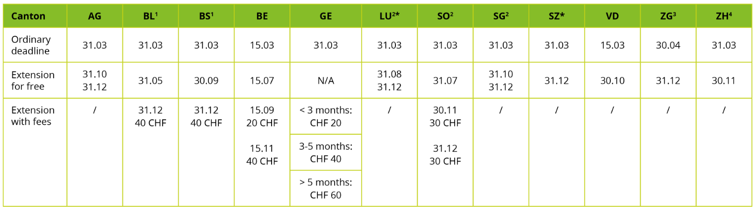 3 Deadline extension over 31.12 possible, the authorities will charge a fee of 35 CHF.
